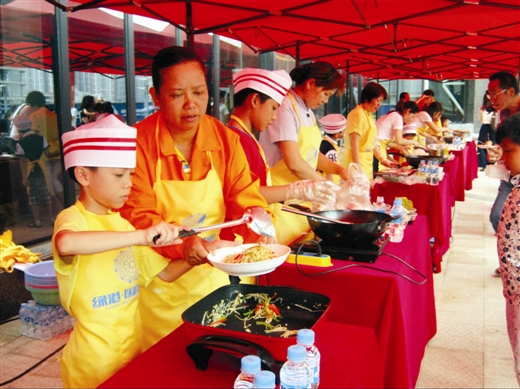 本報訊 昨日上午,南寧經(jīng)濟技術(shù)開發(fā)區(qū)在綠港·國際中心開展了以“關(guān)愛農(nóng)民工·綠港小廚神”親子活動,吸引了南寧經(jīng)開區(qū)園林綠化工人、水電維修物業(yè)工人、保潔人員等300多名進城務(wù)工人員及其子女參加。在活動現(xiàn)場,參賽小選手們在父母的指導(dǎo)下井井有條地備菜、炒菜、起鍋,忙得不亦樂乎。