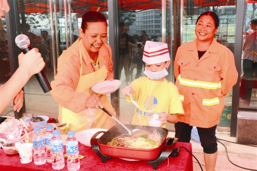 5月28日上午,南寧經(jīng)濟(jì)開(kāi)發(fā)區(qū)開(kāi)展“關(guān)愛(ài)農(nóng)民工 綠港小廚神”主題親子活動(dòng)。轄區(qū)內(nèi)的園林綠化工人、水電維修物業(yè)工人、保潔人員等300多名進(jìn)城務(wù)工人員及其子女參加了本次活動(dòng)。
