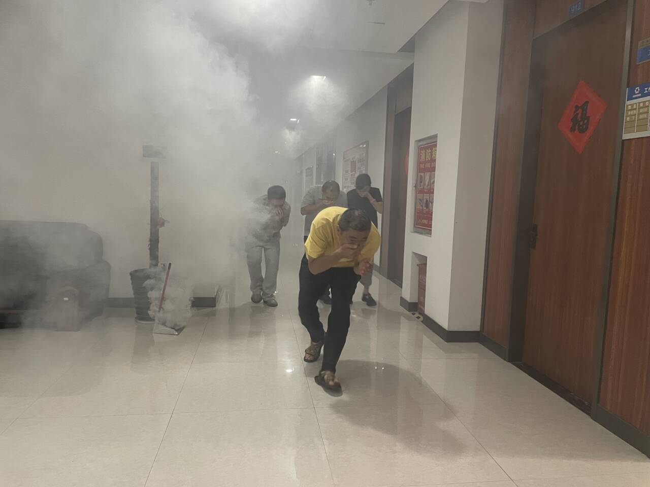 隨后,全體人員轉(zhuǎn)移至模擬火災事故現(xiàn)場,進行現(xiàn)場實操演練。先后體驗了建筑物煙霧逃生、滅火器使用等綜合演練項目。全體員工的安全意識和應(yīng)急處置能力得到了進一步提升。